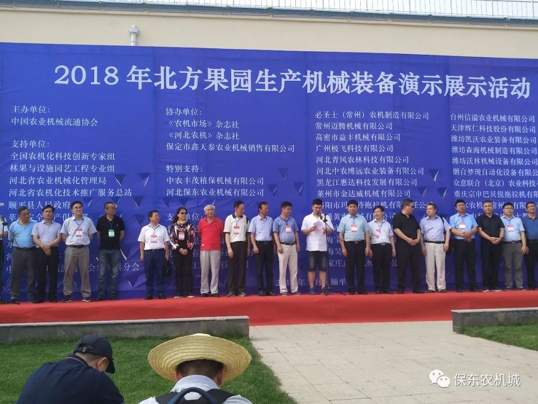 為推動實現(xiàn)水果生產(chǎn)、加工全程全面、高質(zhì)高效機(jī)械化,搭建農(nóng)業(yè)機(jī)械科研、生產(chǎn)、推廣、流通、使用交流合作平臺,促進(jìn)農(nóng)機(jī)農(nóng)藝融合發(fā)展,中國農(nóng)業(yè)機(jī)械流通協(xié)會、全國農(nóng)機(jī)化科技創(chuàng)新專家組林果與設(shè)施園藝工程專業(yè)組、河北省農(nóng)業(yè)機(jī)械化管理局于2018年7月6日在河北保定順平舉辦北方果園生產(chǎn)機(jī)械化發(fā)展論壇暨果園機(jī)械裝備演示、展示活動。編妹有幸也感受了現(xiàn)場的火爆情況,今天編妹就帶大家回顧一下本次展會的精彩。