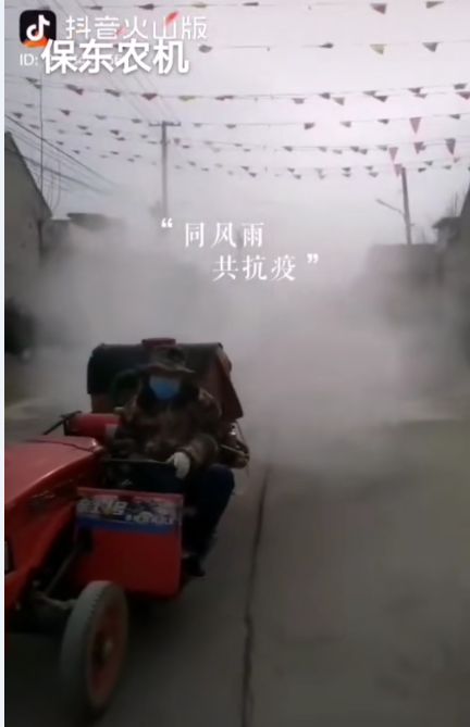 還有很多河北保東的用戶們也紛紛利用起家里的保東果園機械,義務為村里消毒殺菌,朋友圈、抖音、火山被這群“可愛的人”霸屏了......