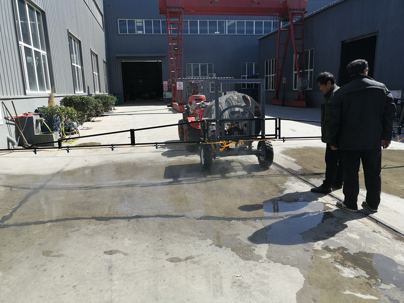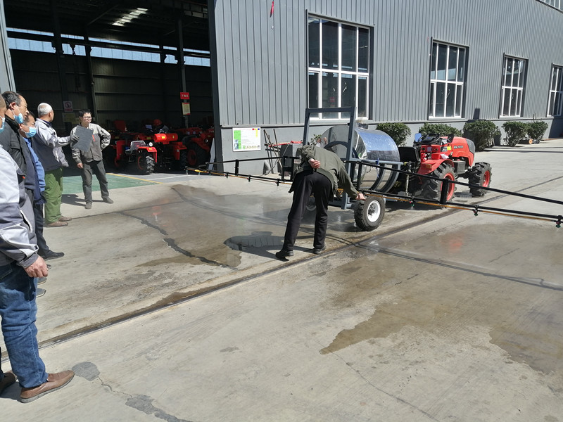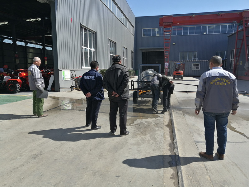 銷售經(jīng)理跟車間主任一說明情況,就安排楊師傅,開著小四輪掛接上打藥機,來到廠區(qū)的組裝車間門口進行實地演示。