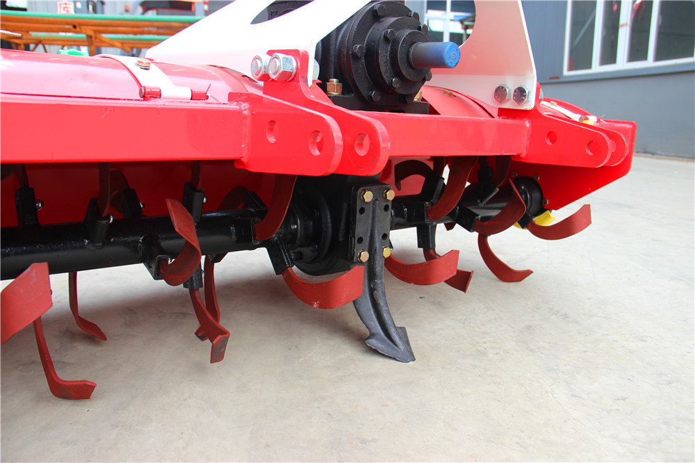 我公司果園管理機配套的旋耕機具有結(jié)構(gòu)簡單,設計合理,輕便靈活等特點.旋耕機按作業(yè)幅寬可分為1米型、1.3米型、1.4米型、偏置1.5米單側(cè)加寬型幾種,用戶可以根據(jù)作業(yè)需要選用。另外,該旋耕機可安裝我公司生產(chǎn)的鋤草輪,進行果園除草作業(yè),具有作業(yè)效率高,拆裝靈活等特點。