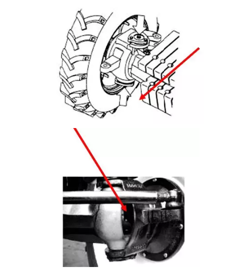 前驅(qū)動橋每側(cè)有兩個油杯見圖箭頭所指